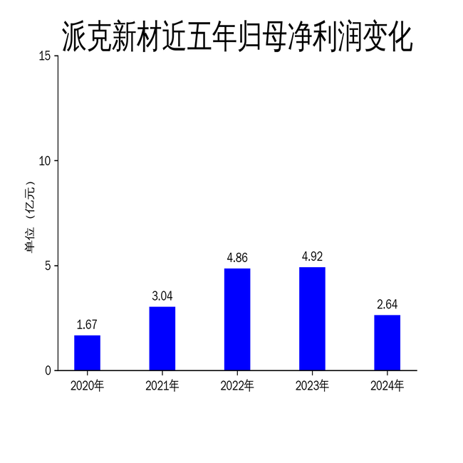 派克新材2024年的财务表现不容乐观。营业总收入从2023年的36.18亿元下降至32.13亿元,同比下降11.21%。更为严峻的是,归属净利润从4.92亿元大幅下滑至2.64亿元,降幅高达46.37%。扣非净利润也出现了42.38%的下降,显示出公司核心业务的盈利能力受到严重冲击。